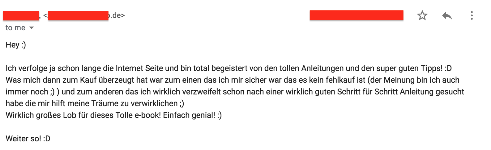 Sollte dir das eBook nicht Gefallen, schicke mir einfach eine kurze Email an mich und bekommst deinen vollen Kaufpreis erstattet – ohne wenn und aber!