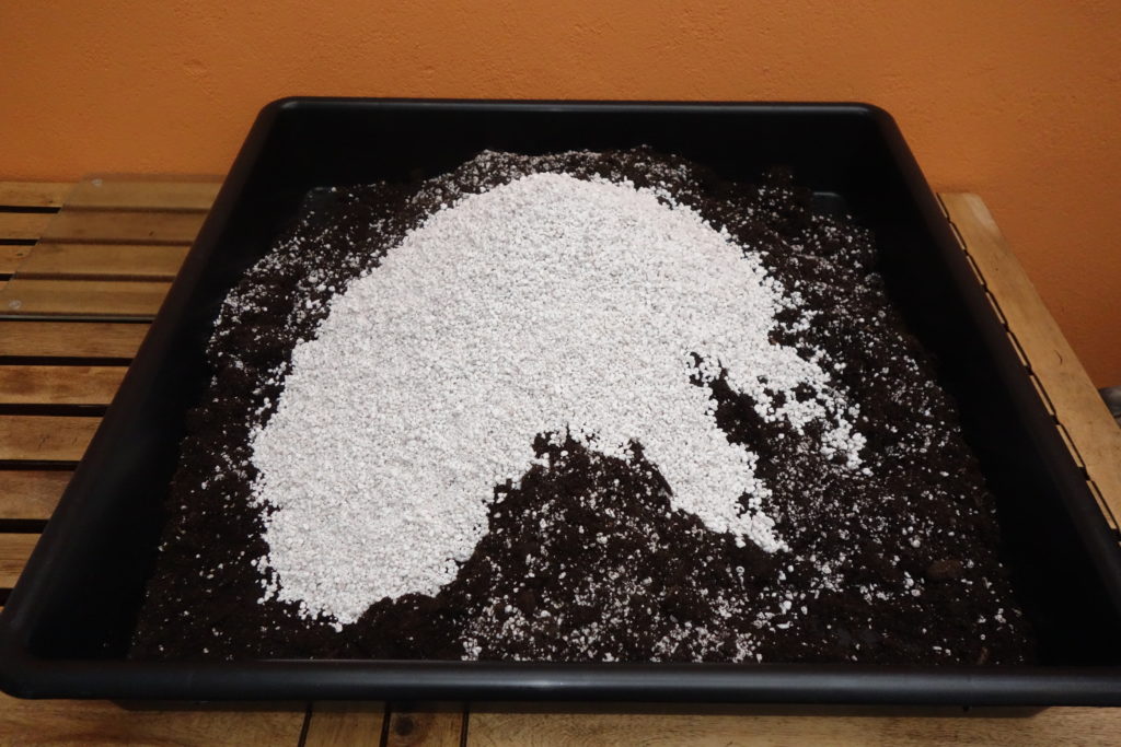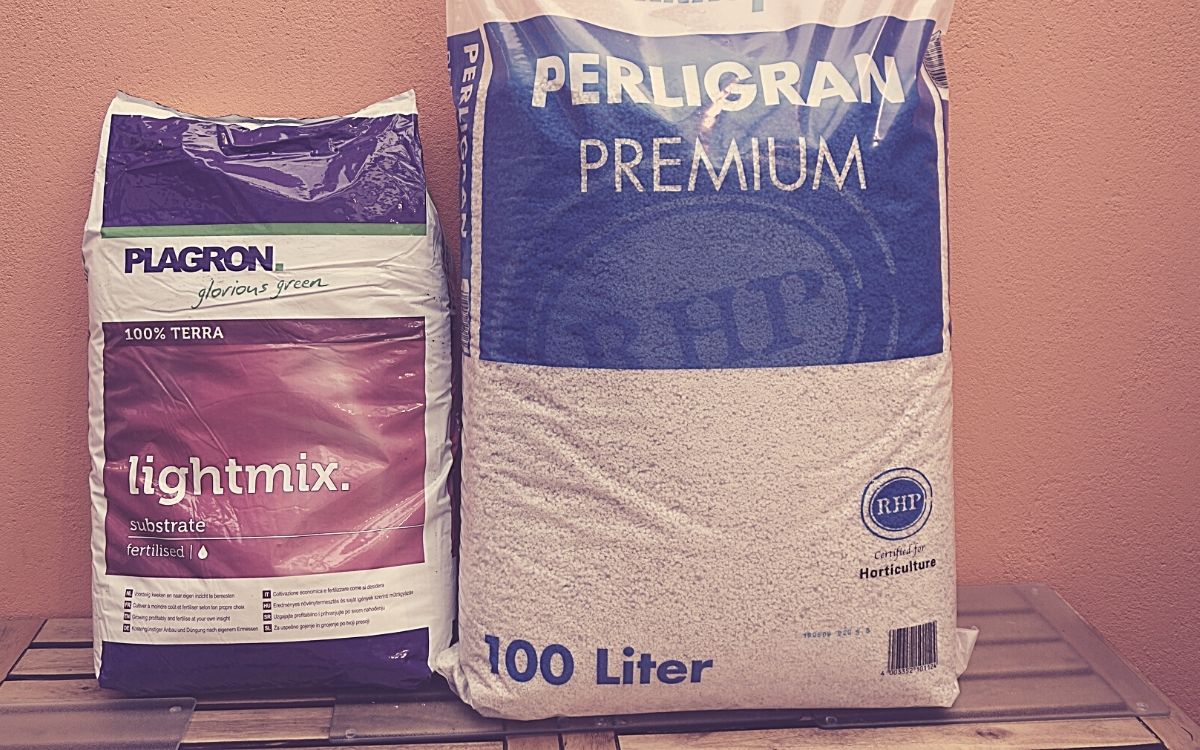Bei einem normalen Grow (11L oder 14L End-Töpfen mit Düngung nach Schema) empfehlen wir als Faustformel: 20 % Perlite und 80 % Erde vom Topfvolumen. Sprich, das Mischverhältnis Perlite zu Erde ist 1:4.