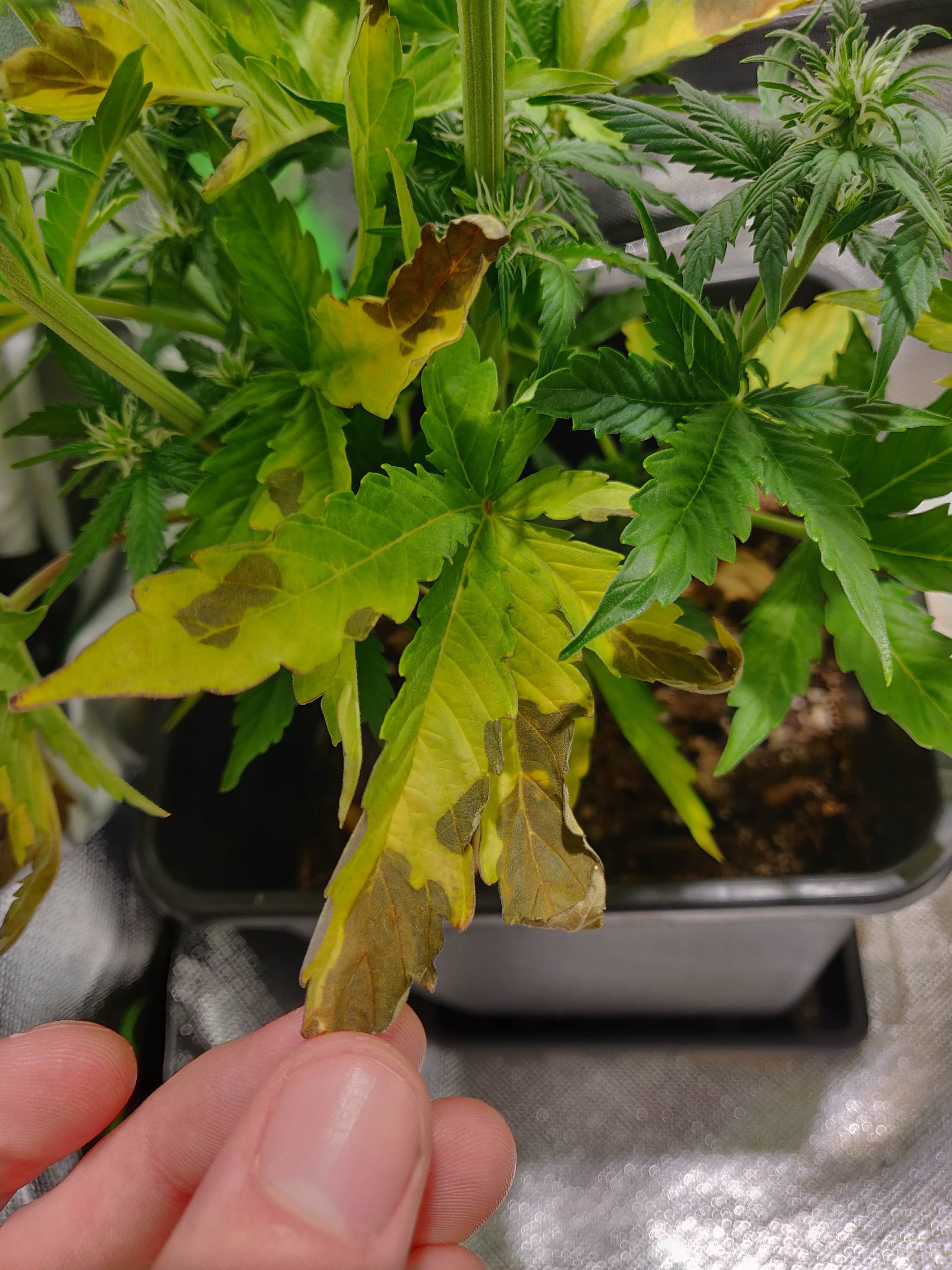 Mit Blattdüngung kann man den Pflanzen benötigte Nährstoffe geben. Hierzu kann man mineralische Dünger bzw. Düngezusätze (CalMag etc.) verwenden. Wenn man bisher nur organisch düngt, muss man einen passenden mineralischen Dünger dazukaufen.