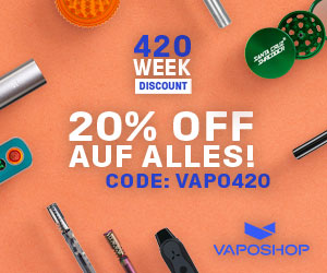 Die Jungs und Mädls von Vaposhop.de feiern 420 natürlich auch, und zwar gleich für eine ganze Woche! Einen 20% Rabatt gibt es hier bis zum 25. April auf das gesamte Angebot im Shop! Dazu Gutscheincode VAPO420 im Warenkorb eingeben.