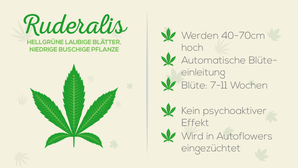 Cannabis Ruderalis wurde lange auf Grund seines niedrigen THC Gehalts und der kleinen Größe beachtet. Viel nützlicher erwies sich dagegen die Einkreuzung von Ruderalis in