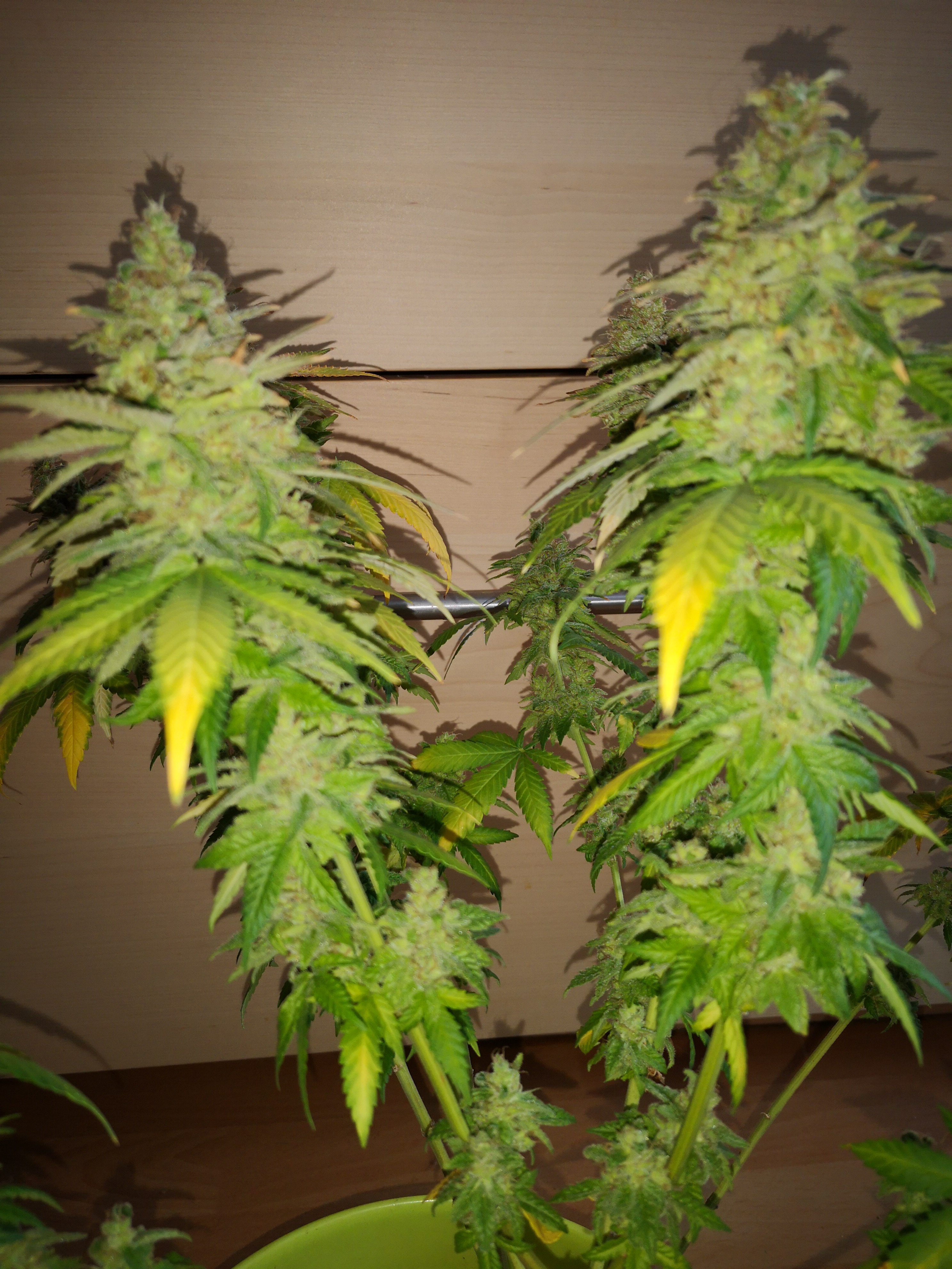 Ein leichter Stickstoffmangel zum Ende der Blütephase (sprich kurz vor der Ernte) ist normal und muss nicht behoben werden. In den letzten zwei bis drei Wochen holt sich die Pflanze nochmal viele Nährstoffe aus den Blättern und haut sie alle in die Blüten.