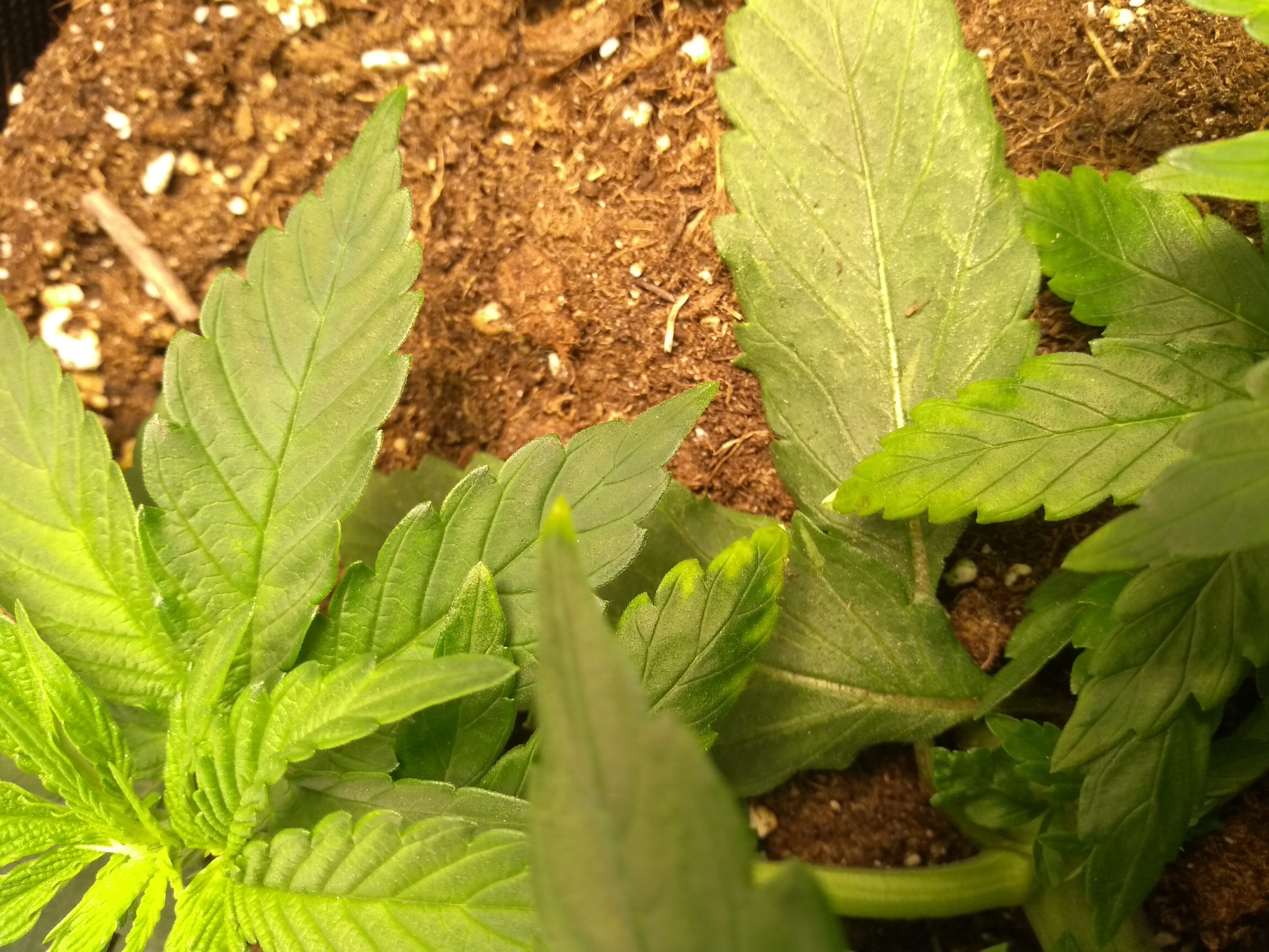 Wenn sich die Pflanze von Stickstoffüberschuss erholt hat, erkennt man dies daran, dass die Blätter sich nicht mehr nach unten biegen und wieder ihre natürlich grüne Farbe bekommen.