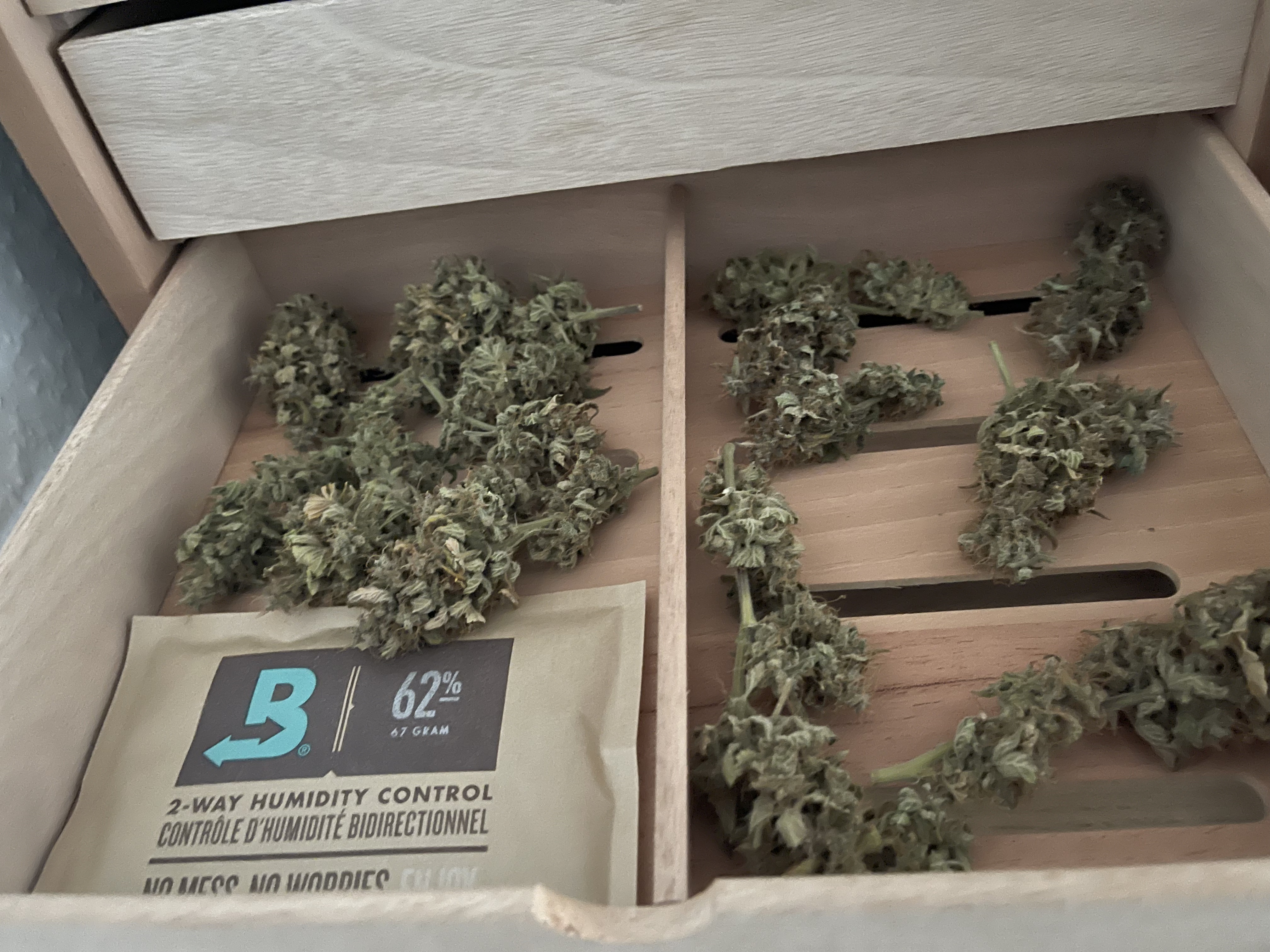 Das Weed, das aus dem Humidor am Ende herauskommt, ist auf den ersten Blick sehr hart (Coffeeshop Qualität). Wenn man es aufbricht oder durch den Grinder zelebriert, merkt man, dass es das perfekte Ergebnis ist. Zumindest für mich. 😉